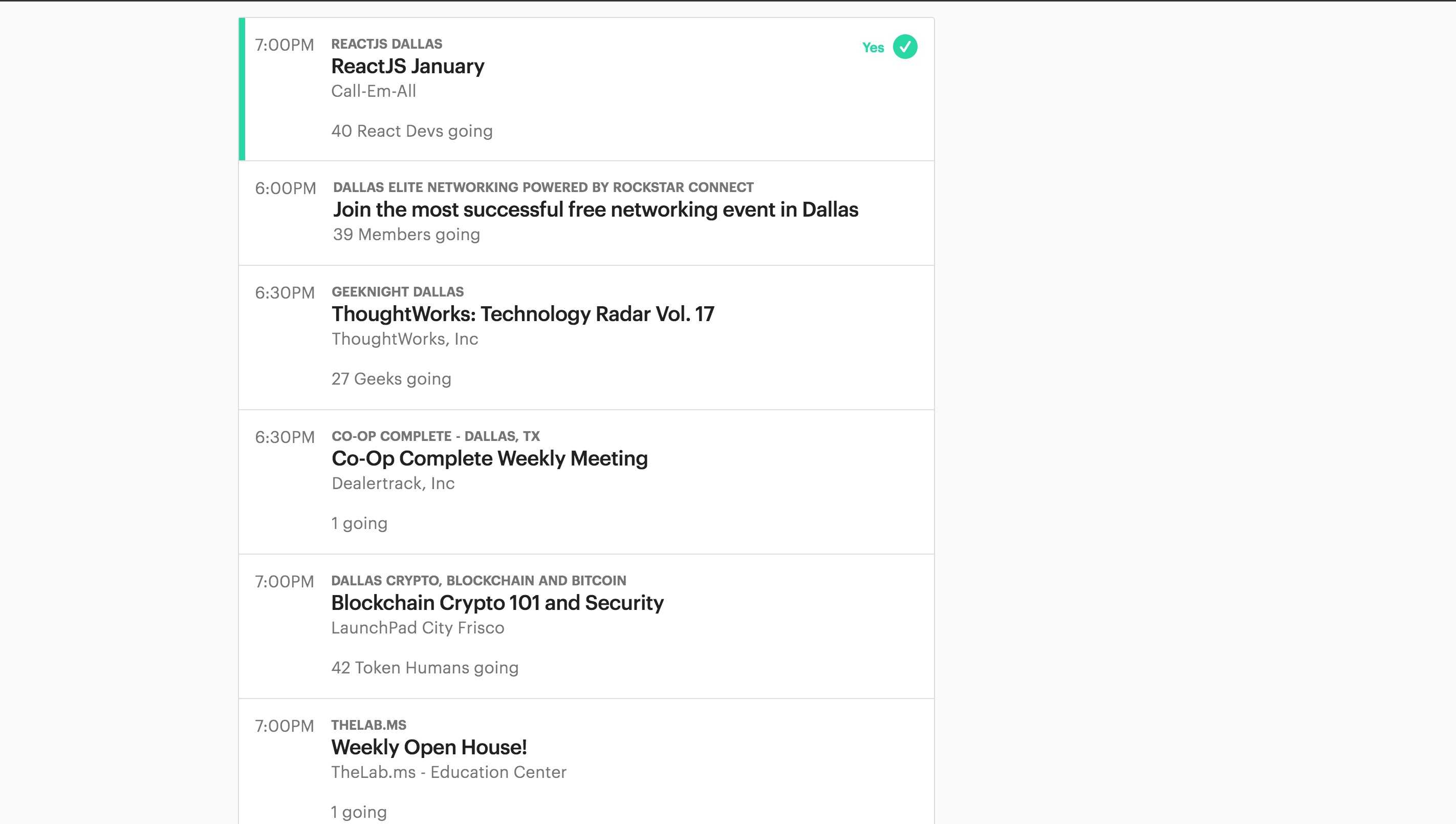 Eventbrite is another good site for finding events. No matter what you are interested in, these sites/apps will likely have an event for it. Many events provide free food as well. So get out there and connect with people while eating food and learning new tech for free (most of the times)!